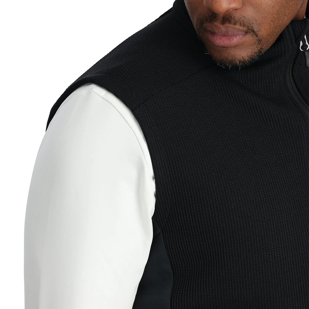 The Bandit vest blends a classic alpine sweater style with a modern twist. A lightweight polyester sweater knit bonded to anti-pill fleece, stretch side panels, and a sleek chest pocket adds functionality to this versatile layer that is great for a day on the mountain.