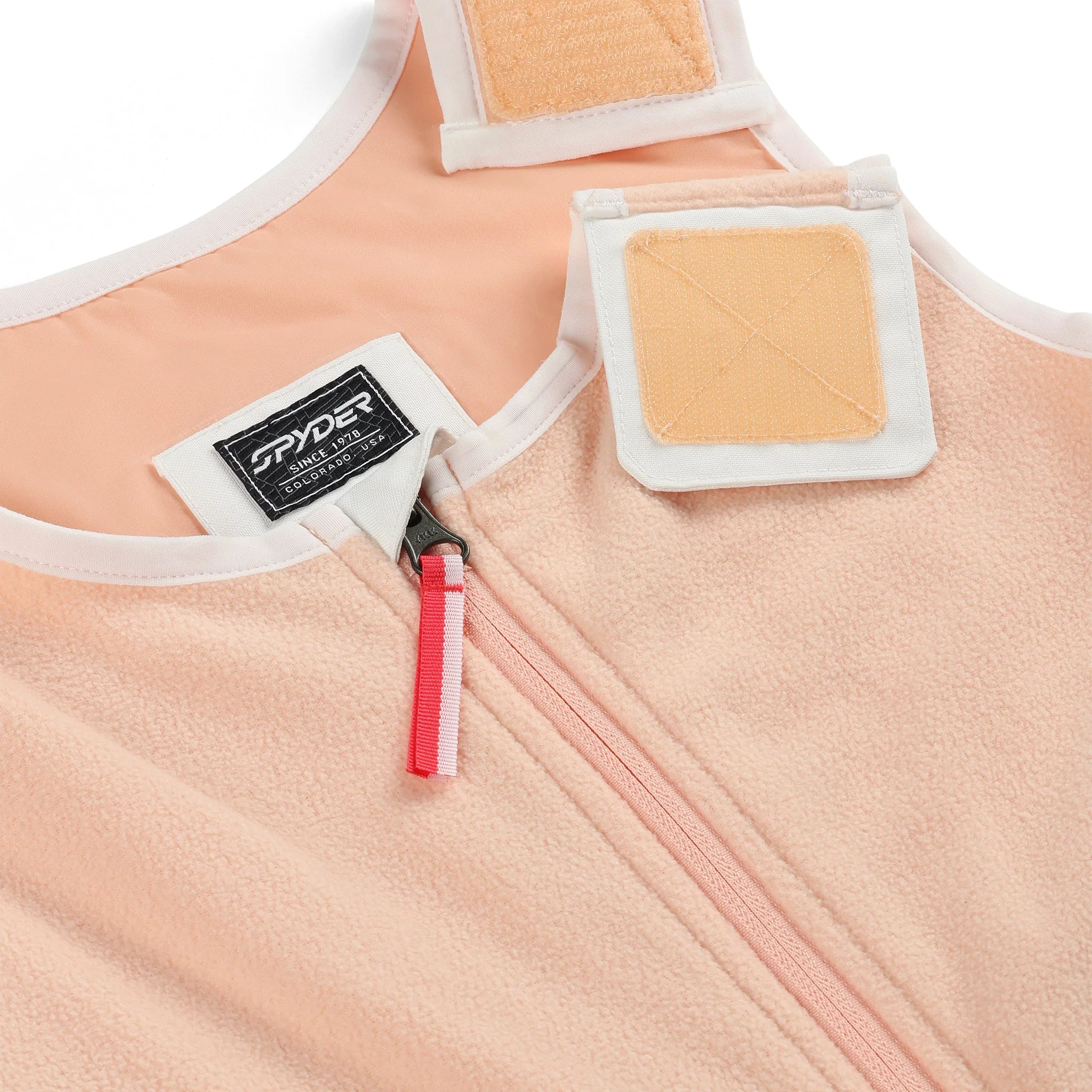 - Attached stretch fleece vest with adjustable shoulder straps